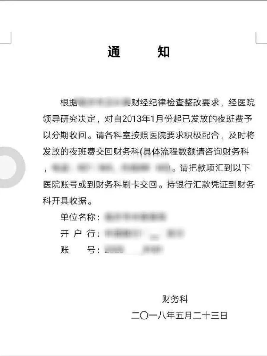 所以,各位同行,你们有没有遇到过医院要求收回夜班费的情况?