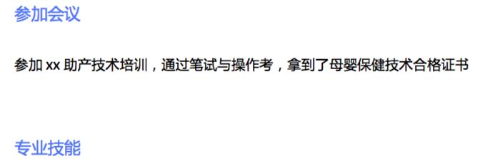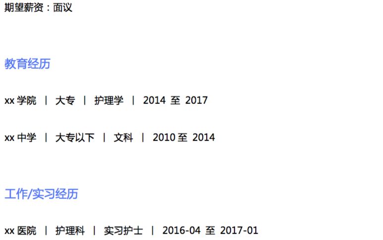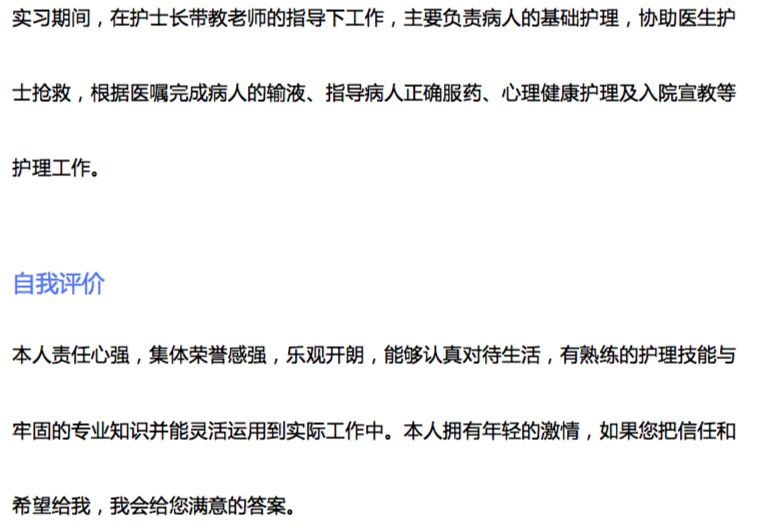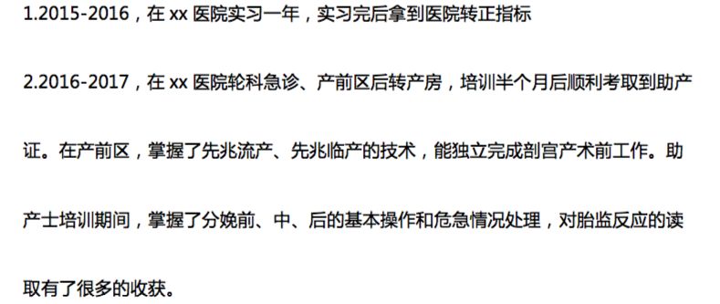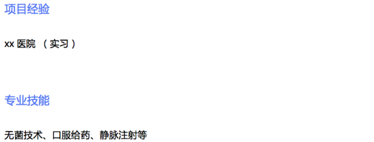 如果只有实习经历,也一定要将实习期间的具体工作内容概括写上,最好不要用一句「在 xx 医院实习」一笔带过。