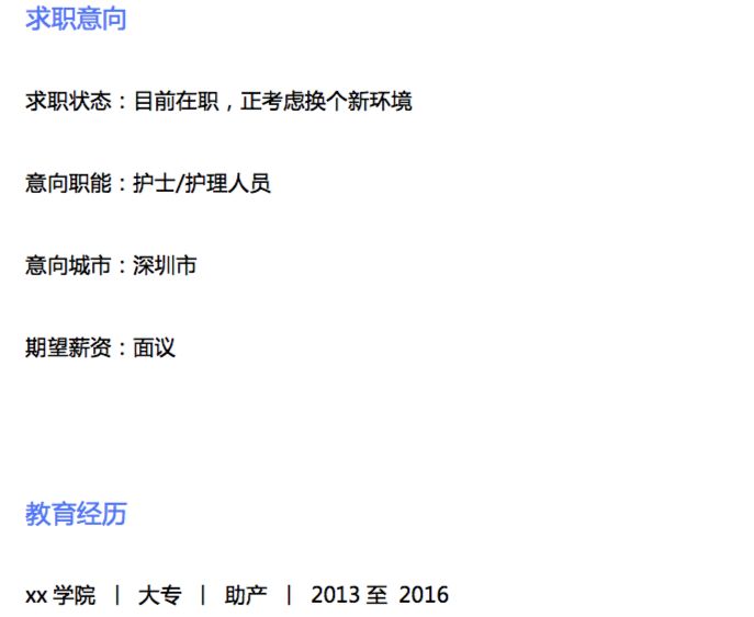 点击下图,开始完善你的简历吧!修改简历后,记得点击阅读原文发现更多的护理岗位~