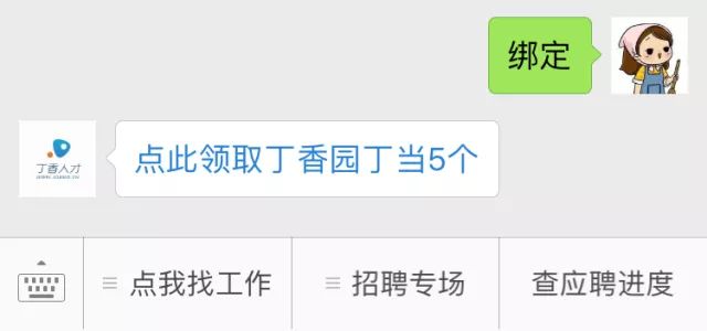 2.如果还未绑定,先在公众号对话框回复「绑定」,将丁香园账号与丁香人才绑定起来,可获得 5 丁当;