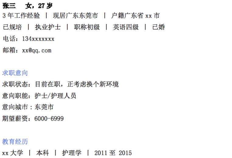 话说回来,不管是应届毕业生求职还是有经验的护士想跳槽,知道了医院的招聘要求只是第一步,简历更是求职的敲门砖。什么样的简历更能得到面试官的青睐?张老师分析了几份通过了广东地区三甲医院筛选的简历——