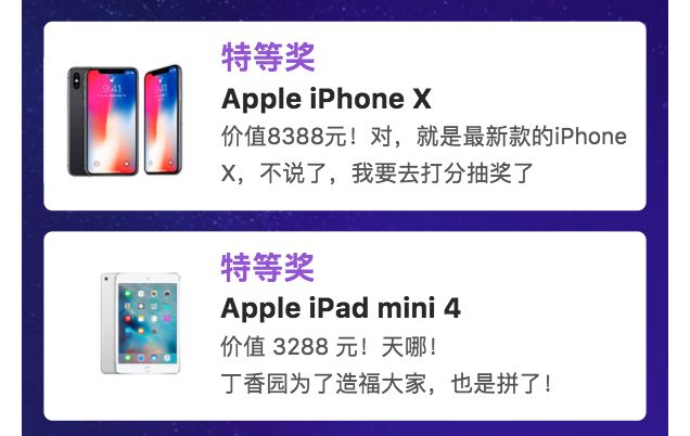 只要个人登陆并完成打分,既有机会参与抽取 Apple iPad 、Apple watch。