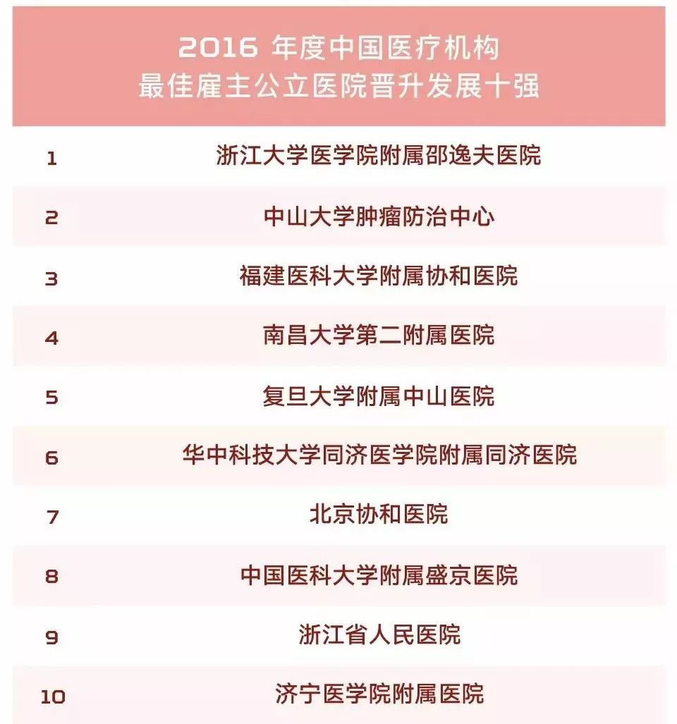 比如, 2016 年度中国医疗机构最佳雇主公立医院晋升发展十强之一的浙江大学医学院附属邵逸夫医院,为在职员工提供出国深造、培训项目,让在职医生不仅仅在岗位上发挥能力,更能在工作当中不断提升自己的医疗水平。