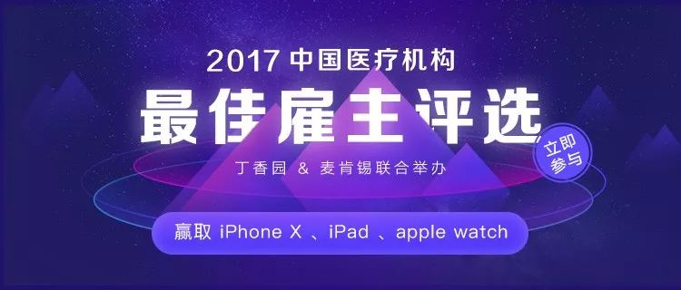 2017 年度中国医疗机构最佳雇主的医疗机构端报名工作也同步展开,如果您是医院管理者或 HR 有兴趣参与,点击「机构报名」,可以直接报名参选。