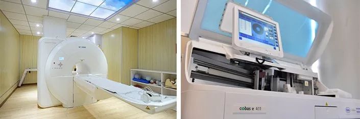 医院配备德国西门子 1.5T 核磁共振、西门子 SPECT、西门子顶级全身应用型彩超、罗氏全自动化学发光仪、全自动生化仪、美国 GE 麻醉监护系统、术中喉返神经检测仪、微创腔镜等先进的诊疗设备。