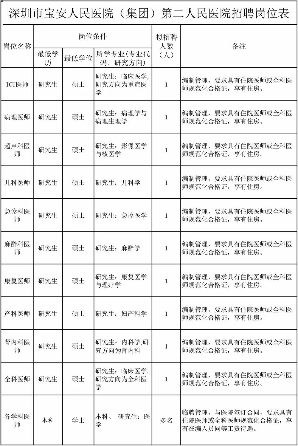 深圳市宝安人民医院(集团)第二人民医院招聘岗位详见下图。