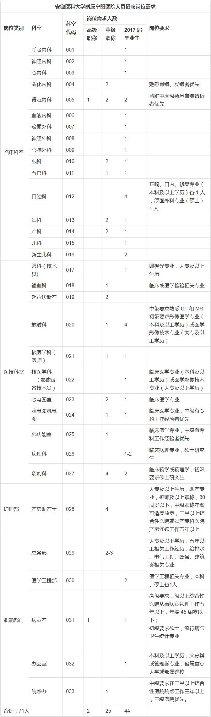 安徽医科大学附属阜阳医院紧急招聘,报名截至 2017 年 1 月 3 日