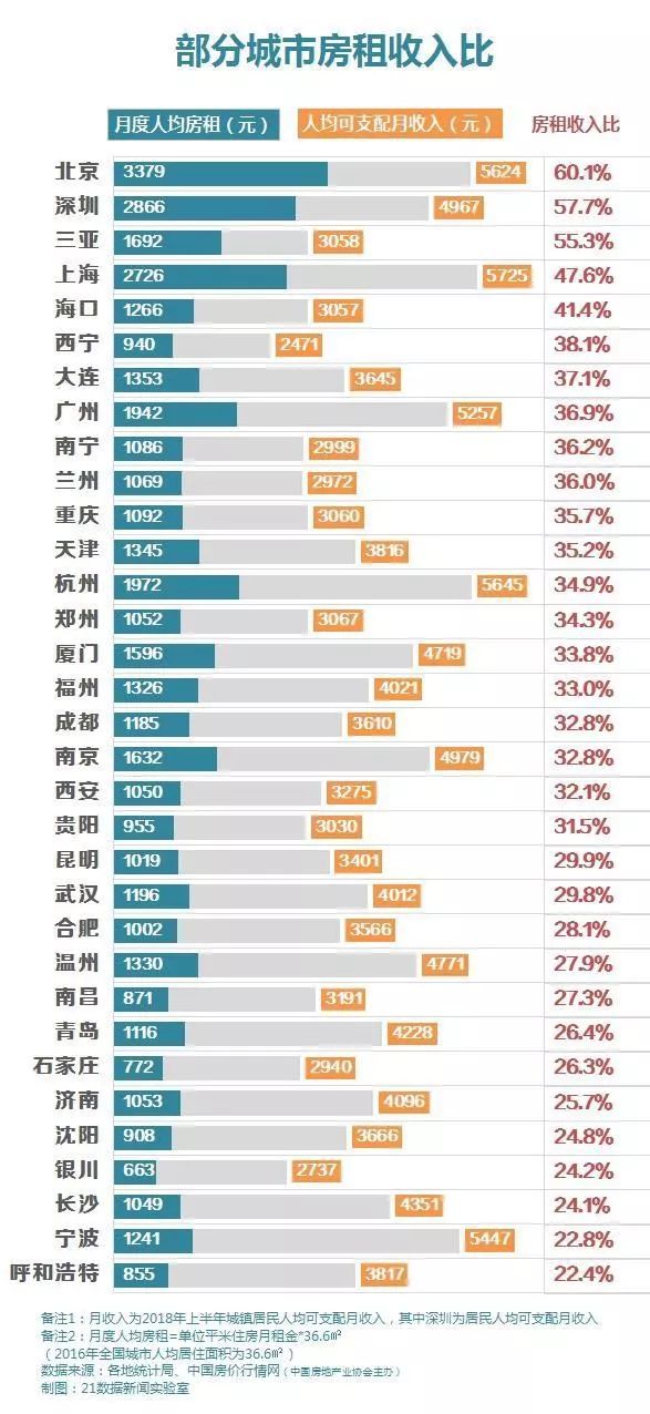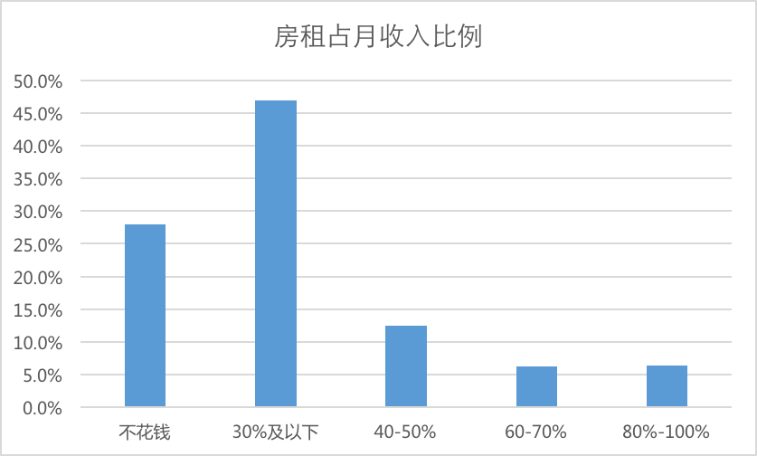 北京租房报告显示:「北漂」平均每月房租交 3 379 多元,其次是「深漂」2 800 元、「沪漂」2 700 元。一线城市中,每月房租占月收入的 47% 以上,即便是二线城市,租房成本占据收入三分之一。点击 薪酬查询工具, 了解各地薪酬。