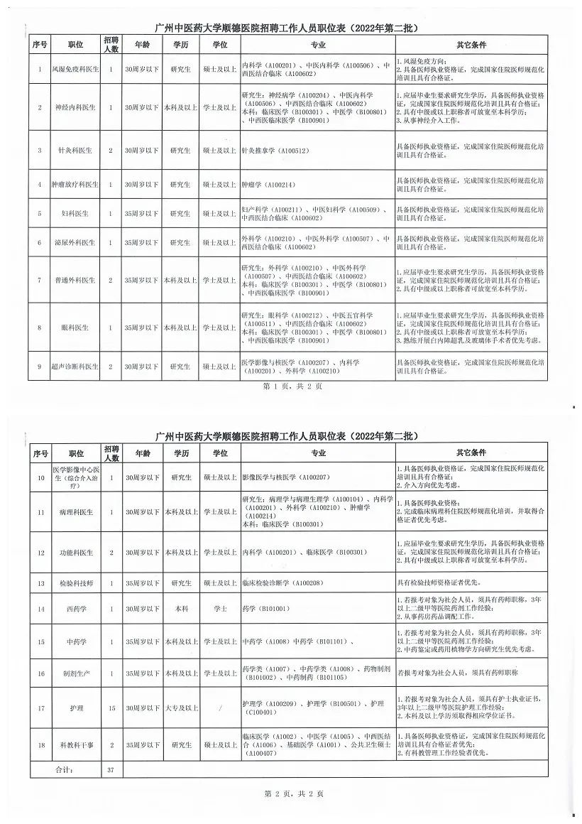 >> 广州中医药大学顺德医院招聘岗位及要求