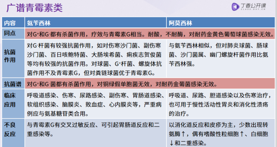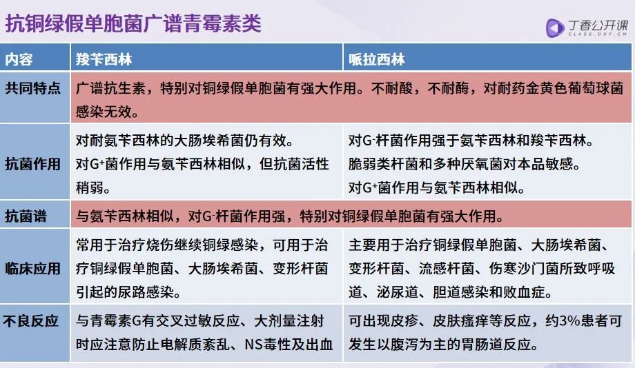 下面两张图为广谱类青霉素和抗假单胞菌青霉素类药物的一些特点总结,供大家参考。