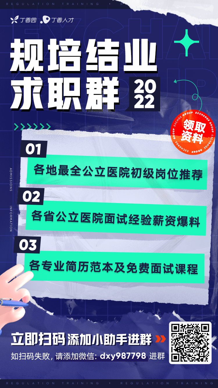 在这个工作交接的重要节点,作为专业的医疗招聘平台,为了避免大家漏掉关键信息,丁香人才将组建各地区规培结业求职群,提供地区内最全的招聘信息。