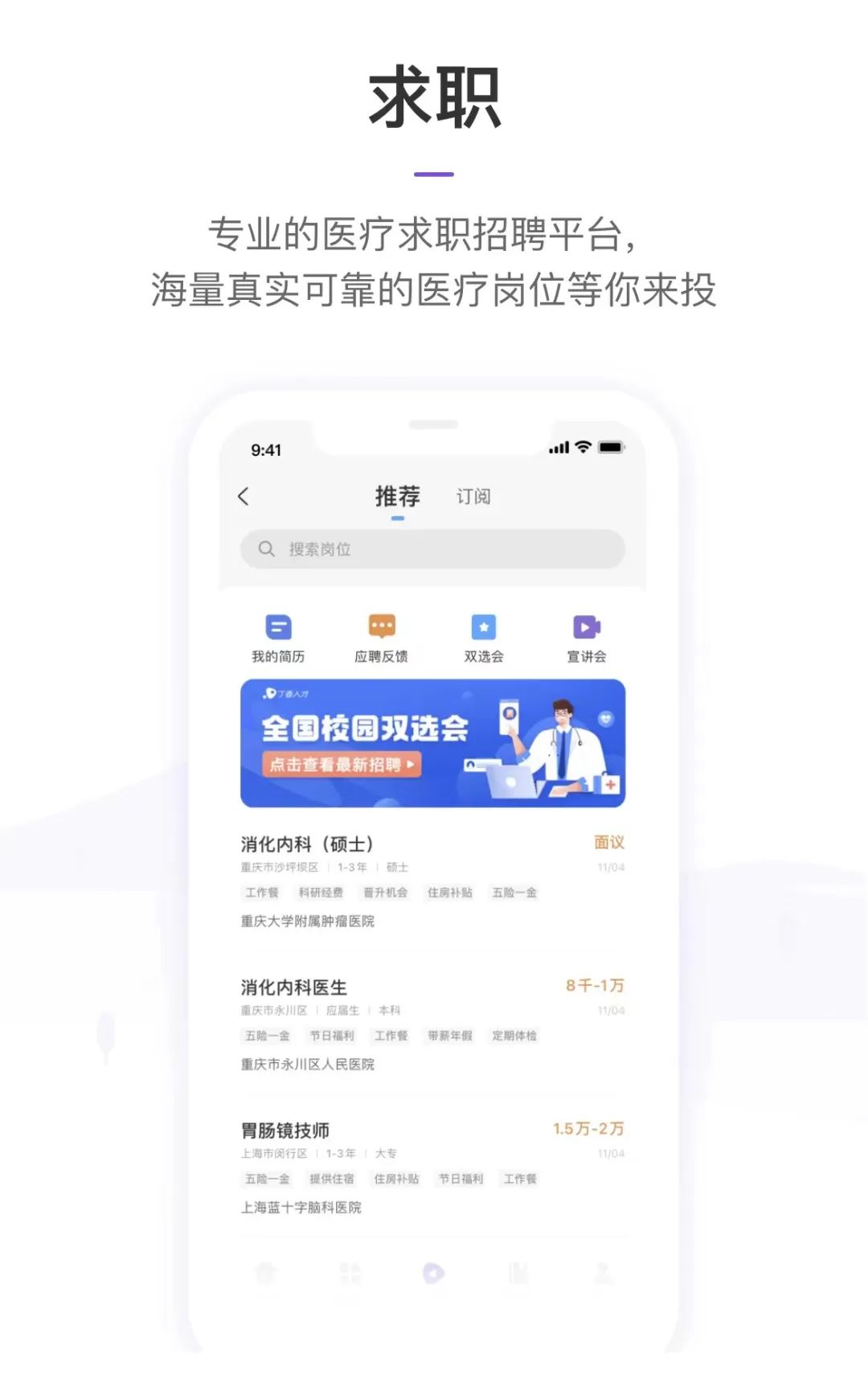丁香园 App 产品及服务介绍日期:2022-08-08 来源:丁香人才公众号 丁香园是面向医疗从业者的专业平台,以「助力中国医生」为己任。下载「丁香园 App」可以和同行讨论病例 ,在线学习公开课,使用用药助手等临床决策工具,在丁香人才找可靠医疗岗位。 ↓↓↓ 点击「阅读原文」下载「丁香园 App」微信扫一扫分享资讯上一篇:医学生可以赚零花钱的副业来啦下一篇:中高级人才免费求职顾问上线,名额有限速来!