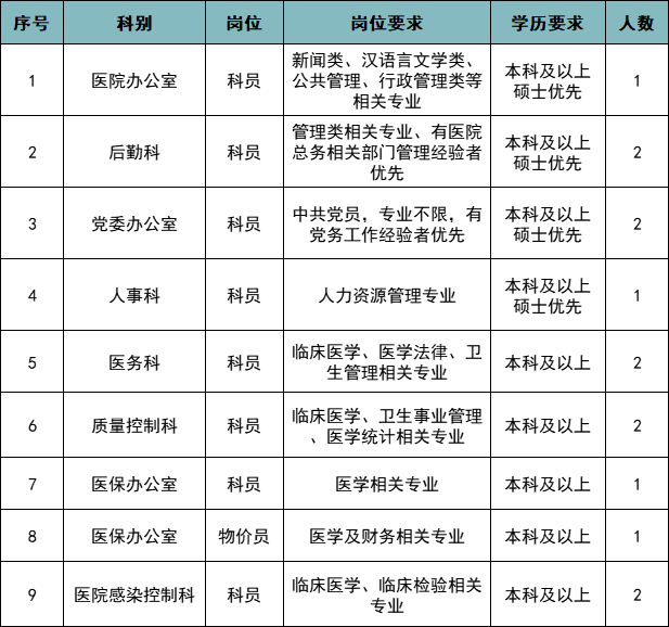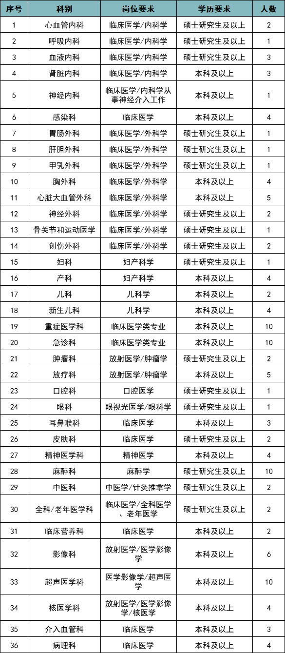 根据医院发展需要,现面向海内外公开招聘各类各层次工作人员,岗位设置如下: