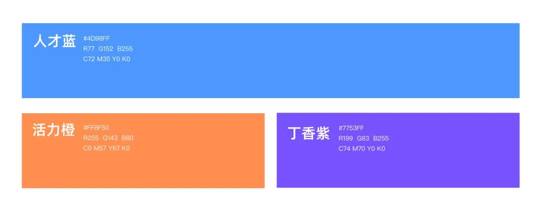 品牌标准色扩充主品牌色上,我们升级为专业可靠、值得信赖的「人才蓝」。
