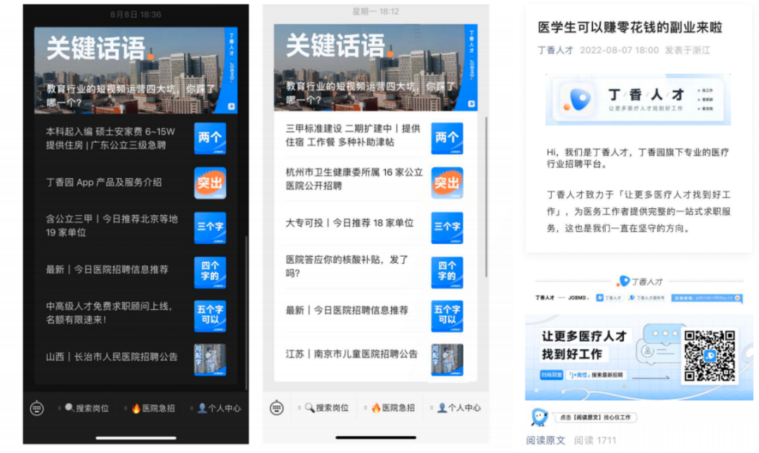 2007年,丁香园第一个正式产品——「丁香人才」发布上线,遂成为医疗健康领域赖以信任的求职招聘网站。