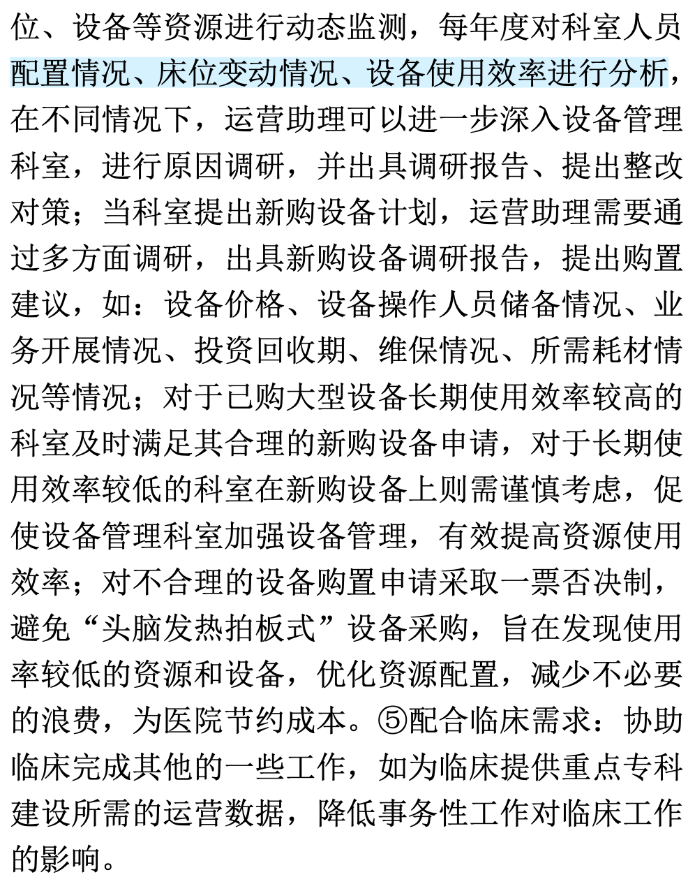 协助临床科室主任将医院战略目标与科室发展有机结合,帮助科室主任进行日常管理;整理、分析科室运营信息并上报医院运营管理部门;并承担科室、部门间的沟通协调等工作,提升医院、科室管理效率和水平。