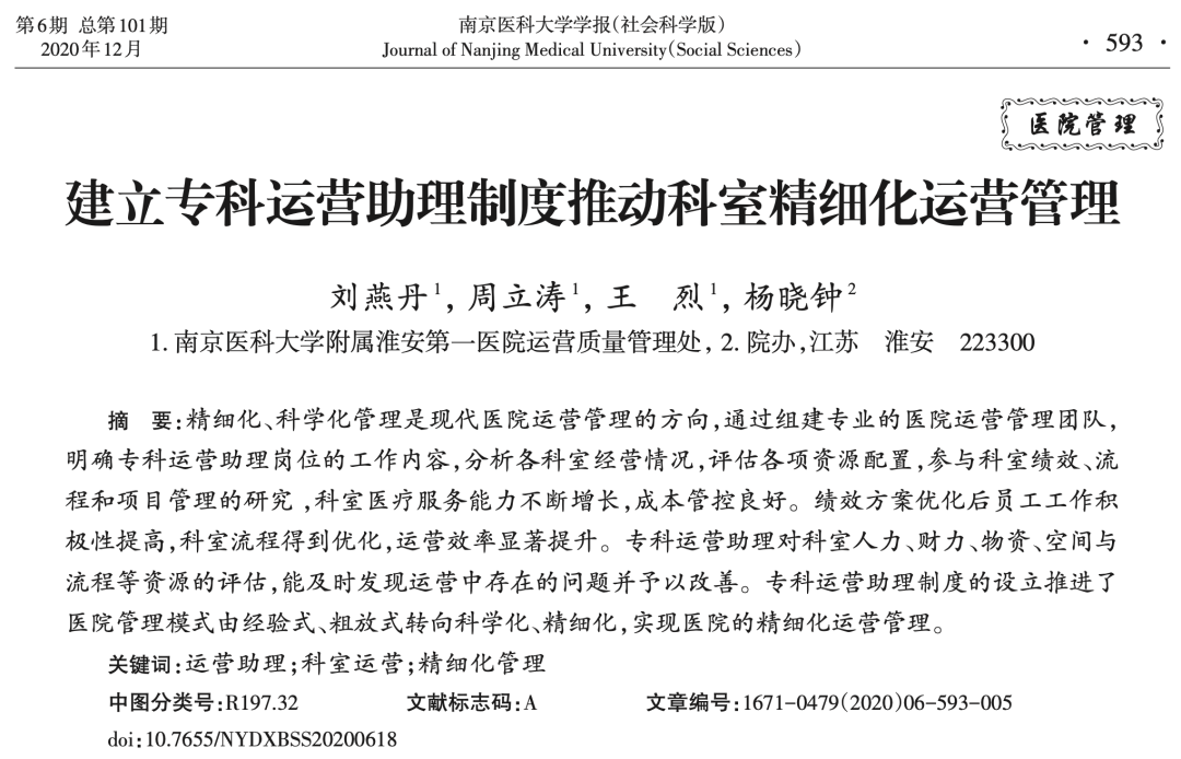 其他已发表的相关文献中,多次提到专科运营助理制度在「推动科室精细化运营管理」方面的重要意义。