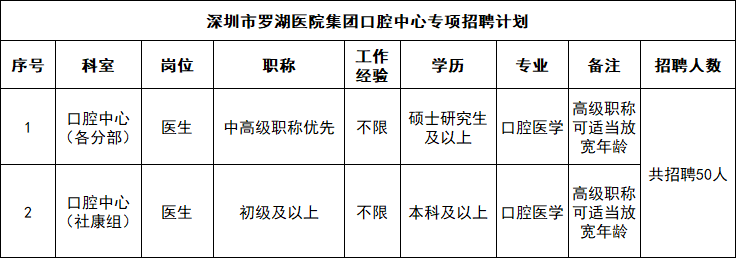 罗湖医院集团口腔医学中心招聘丨三甲平台 多个分部