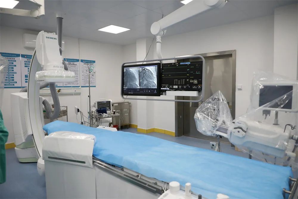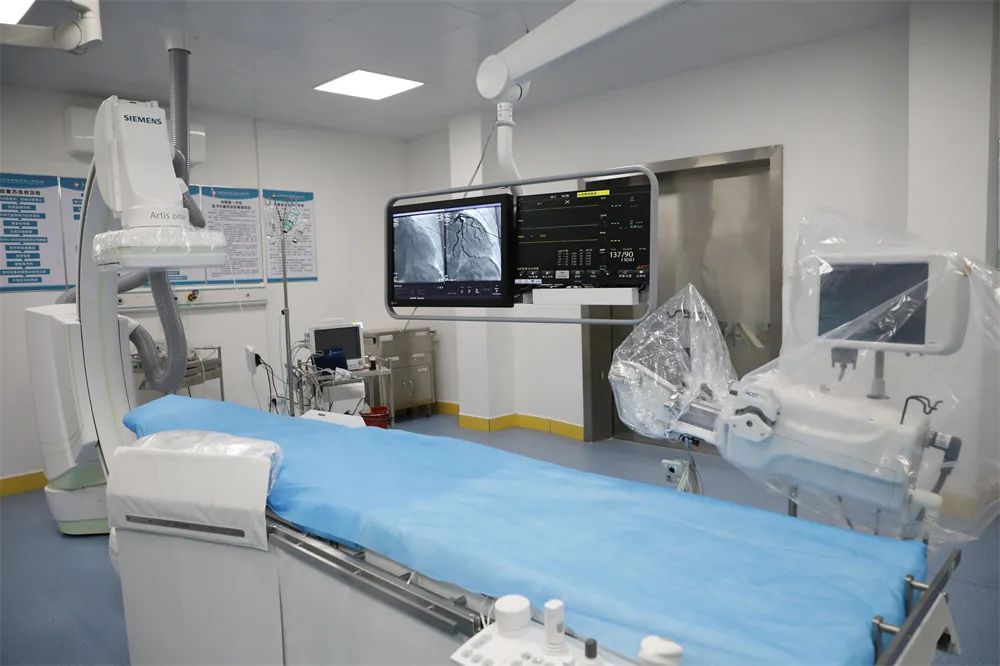 介入导管室能开展多种介入手术: 急性心梗急诊介入治疗,永久起博器植入术、心律失常射频消融术、外周血管、脑血管造影取栓及支架植入术等三、四级手术,能开展骨科、泌尿外科、妇产科等学科腔镜微创手术。