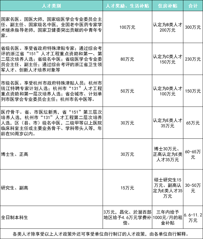 在杭州市政府、临安区政府及卫生健康局人才引进补助的基础上,医院提供以下人才待遇。