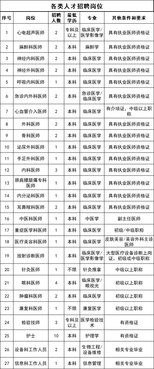 大专起聘 本科起享购房补贴 3~20W丨三级标准建设医院招聘