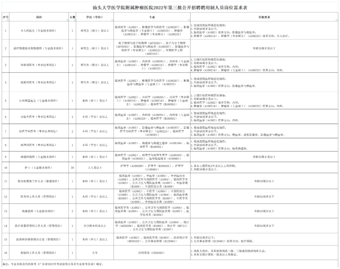公招|汕头大学医学院附属肿瘤医院招聘公告