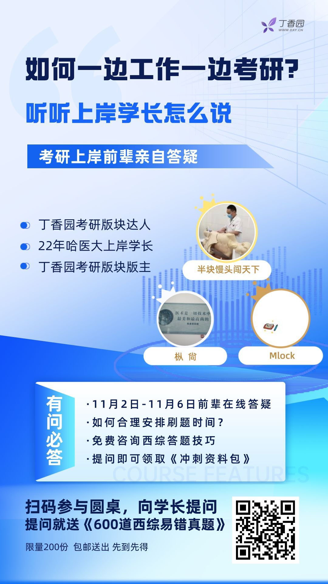 22 年考研上岸哈尔滨医科大学,拥有最新考研经验的学长,可以为大家解答各科复习技巧、考研注意事项、西综刷题技巧。