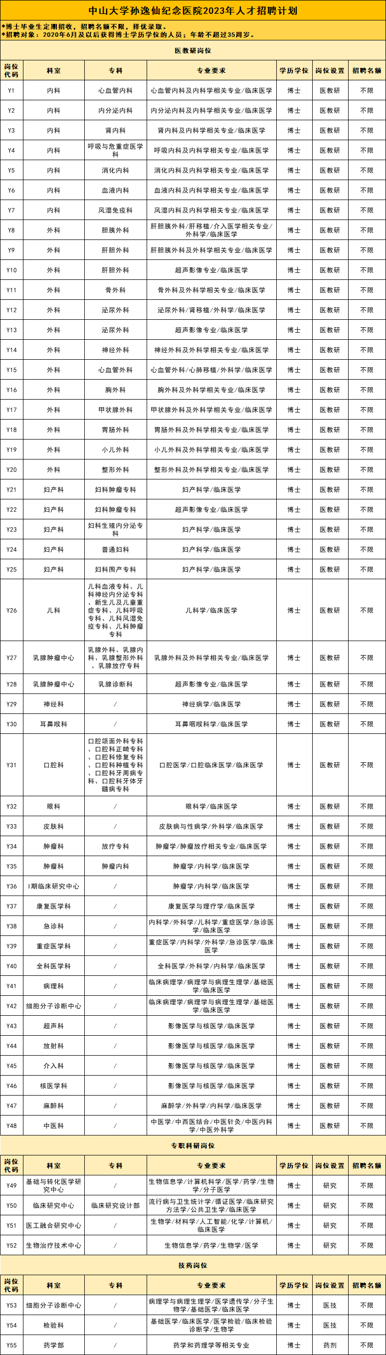 具体招聘岗位及要求详见下表>>《中山大学孙逸仙纪念医院 2023 年人才招聘计划》。
