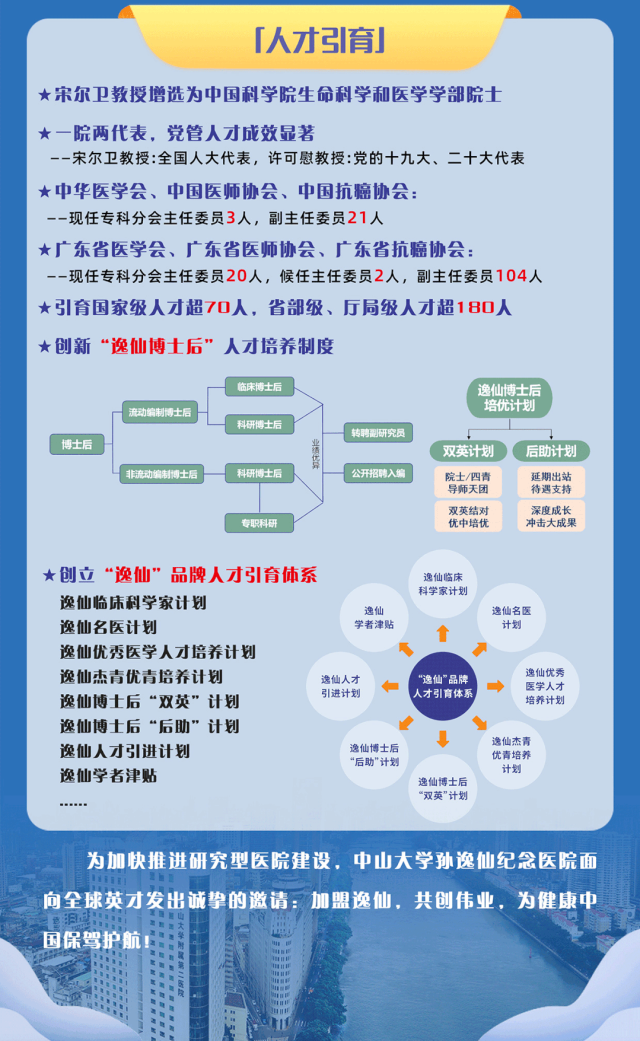 1、逸仙博士后「双英」计划: 邀请以院士为代表的资深学术权威及卓越领军人才等导师天团对博士后开展结对指导,并配套 10 万元 科研启动经费,资助开展创新性研究,培养拔尖青年人才。