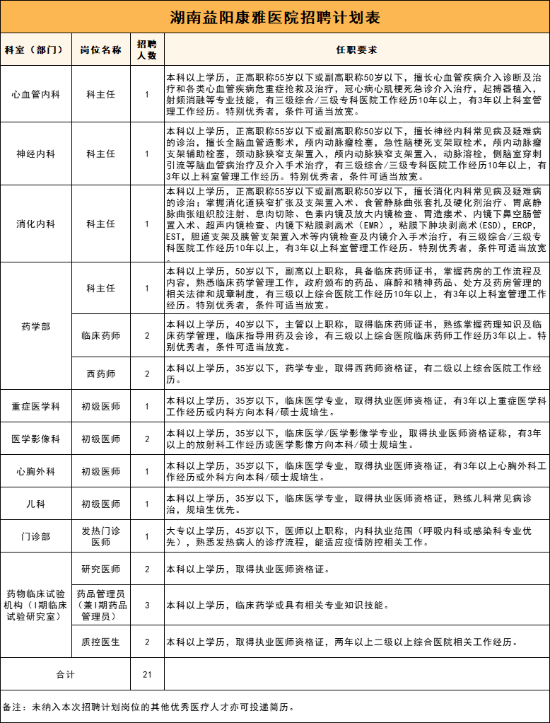 心血管内科科主任神经内科科主任消化内科科主任药剂科科主任药剂科临床药师西药师重症医学(ICU)医师医学影像科初级医师心胸外科初级医师儿科初级医师