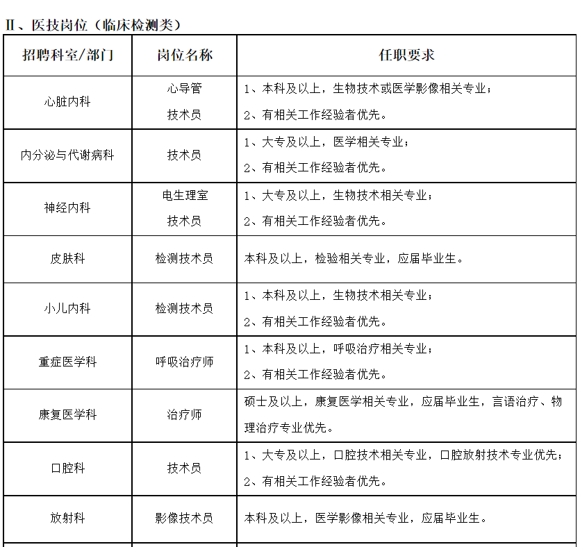 1. 上海交通大学医学院附属第九人民医院 推荐理由 : 公立三甲,本科可投,应往届均招 在招岗位 : 急诊科 /检验科/麻醉科等点击查看 98 个在招岗位 >>