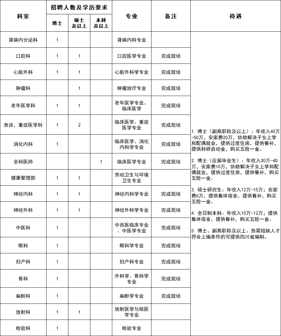 1. 博士(副高职称及以上):年收入 40 万~50 万 ,安家费 20 万 ,协助解决子女上学配偶就业;