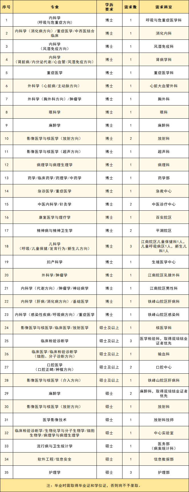 为进一步满足医院学科建设、人才队伍建设及业务发展需要,2023 年计划面向社会招录以下人员: