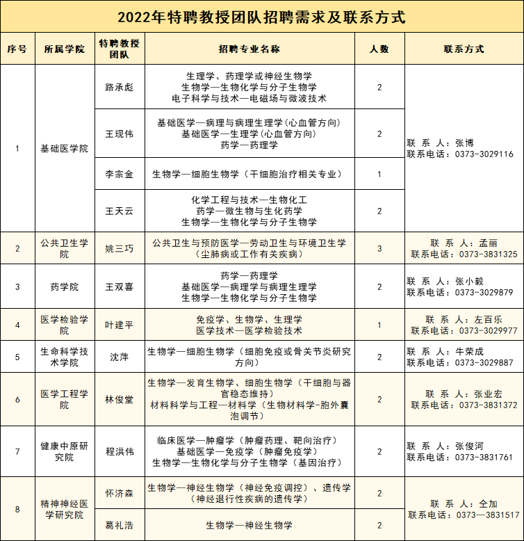 大力招聘战略人才、学科领军人才和青年创新人才。海内外高水平大学教授、副教授及学术水平相当的各类高层次人才均可申报。条件要求可参照河南省高层人才认定分类及标准。