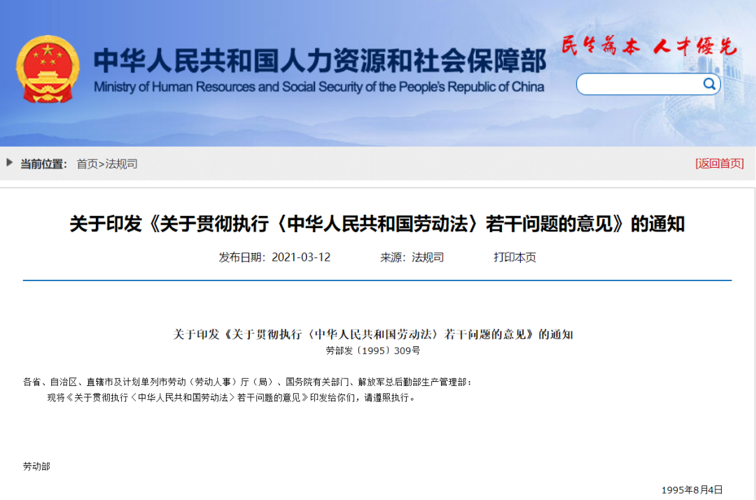 并且,根据《关于贯彻执行 〈中华人民共和国劳动法〉 若干问题的意见》第五十九条规定: