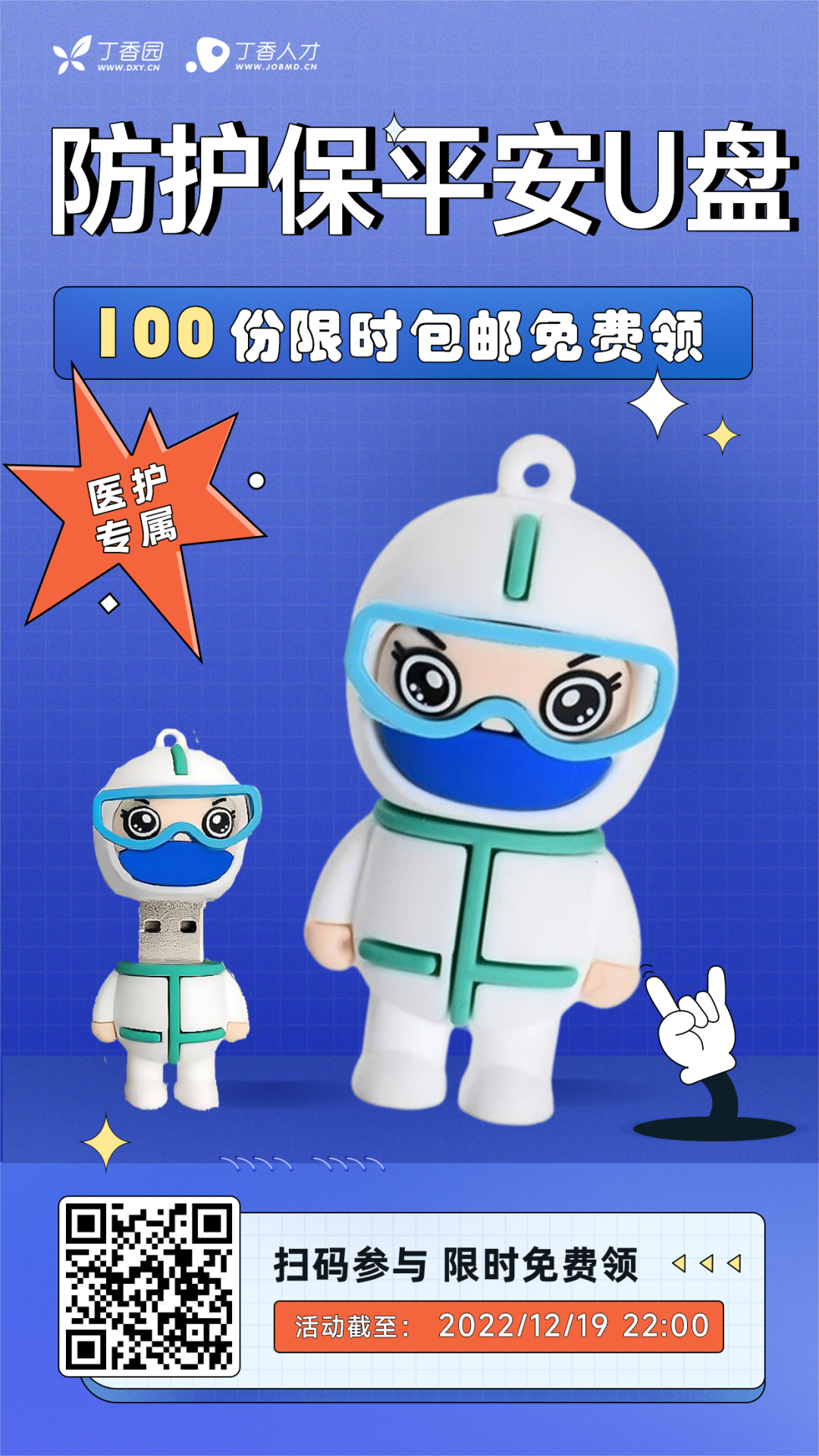 今天,丁香人才想给全体医务人员福利,【防护保平安】U盘(32G)免费包邮送到家!
