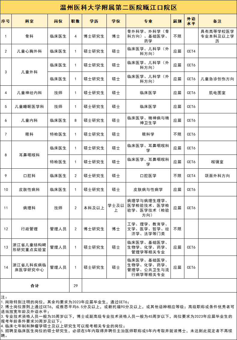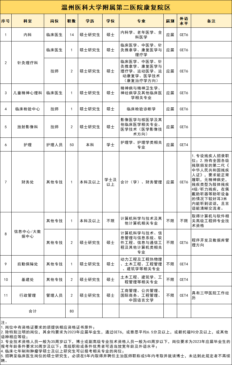 硕士研究生及以下学历岗位需通过公招考试(若为博士学历人员可按规定免笔试,直接进入面试环节),具体可以登录温州医科大学附属第二医院网站查看相关公招信息。