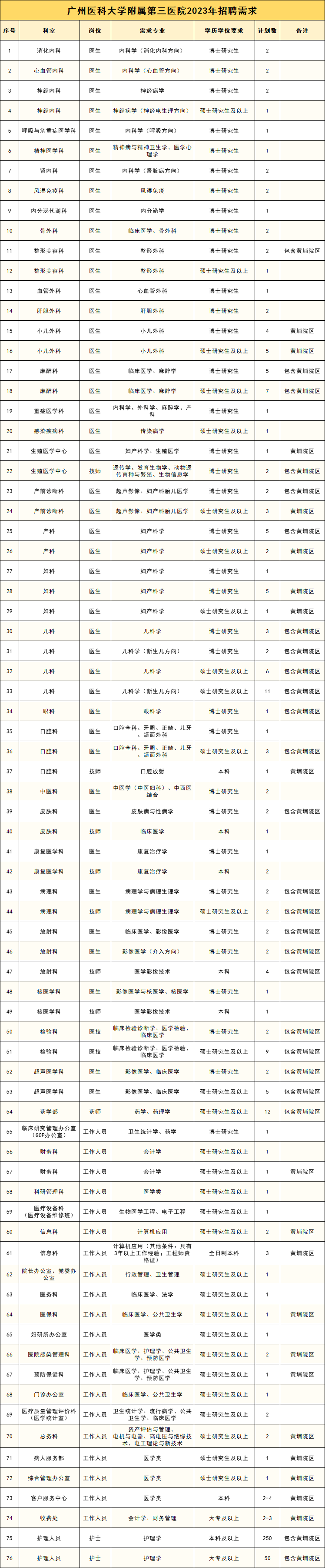 招近 500 人 | 广州医科大学附属第三医院发布 2023 年招聘需求