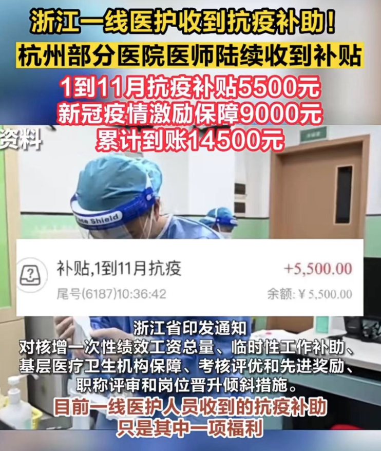 最近各地区纷纷发布抗疫补贴,很多医护人员反馈已经收到啦,你领到补贴了吗?