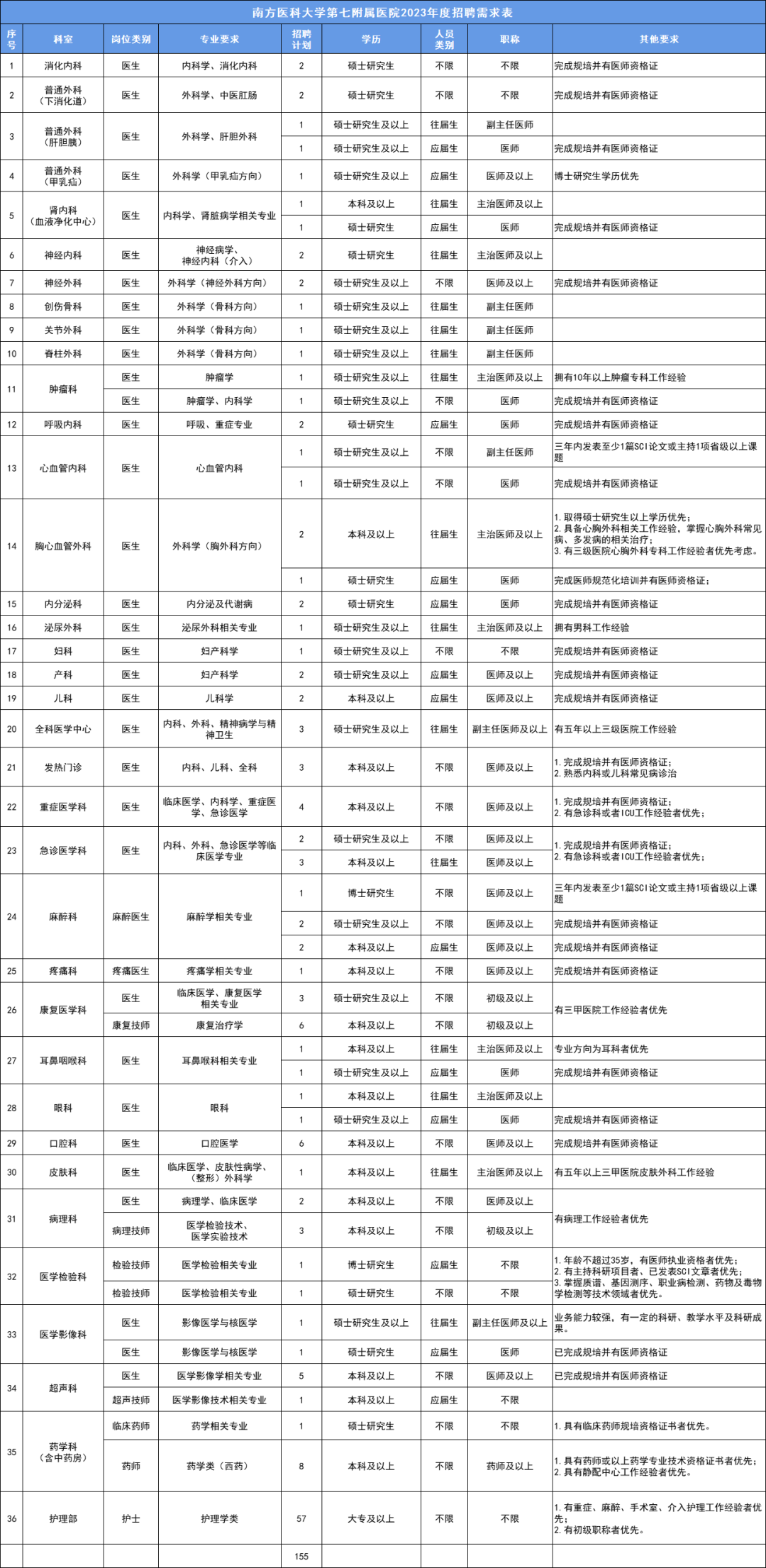 南方医科大学第七附属医院 2023 年度招聘计划!