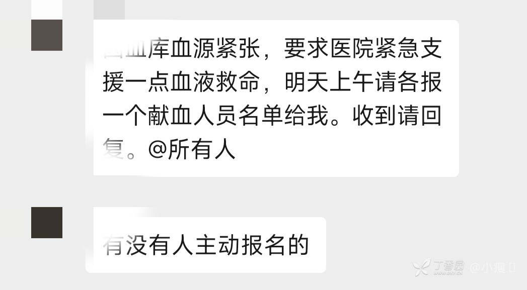 最近血库血源紧张,医院要求我们 1 天内上报献血名单。还在群里问是否有主动报名的。不知道大家怎么看待这种事情?