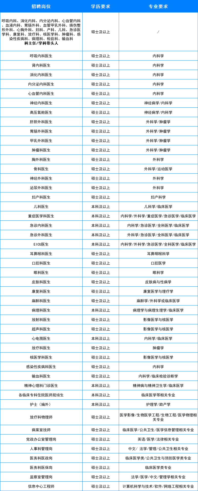 点击以下岗位名称即可应聘☟☟☟骨科医生神经外科医生泌尿外科医生