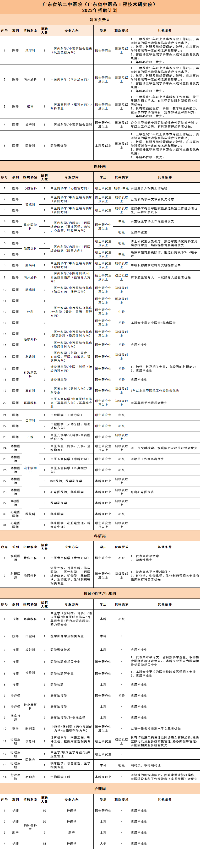 招贤纳才:广东省第二中医院 2023 年招聘计划