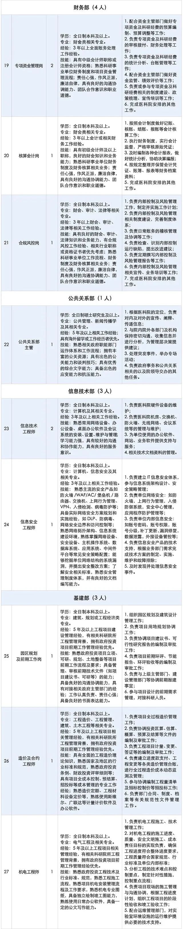 2023 年 2 月 6 日,颜宁出任院长的深圳医学科学院(筹)发出通告,公开招聘 30 个岗位、41 名工作人员,涉及专项资金项目管理办公室、科研部、教育与交流部等 12 个部门。其中 10 个岗位要求医学、生物医药及其他相关专业背景人才。