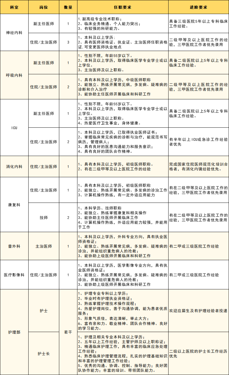 医院急招岗位