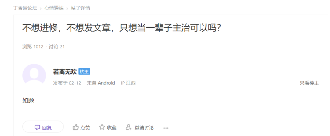 不想进修,不想发文章,只想当一辈子主治可以吗?近日丁香园站友「若离无欢」发帖——一记灵魂拷问,直击人的本心。
