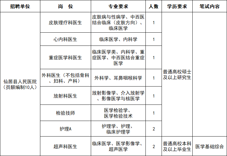 为满足仙居县卫健系统对优秀专业人才的需求,经相关部门同意,仙居县卫生健康局下属医疗卫生单位于 2023 年 3 月 11 日在浙江中医药大学开招聘会,拟招聘医学类普通高校硕士研究生、全日制普通高校 2023 年应届本科毕业生共计 18 名,具体招聘事项公告如下: