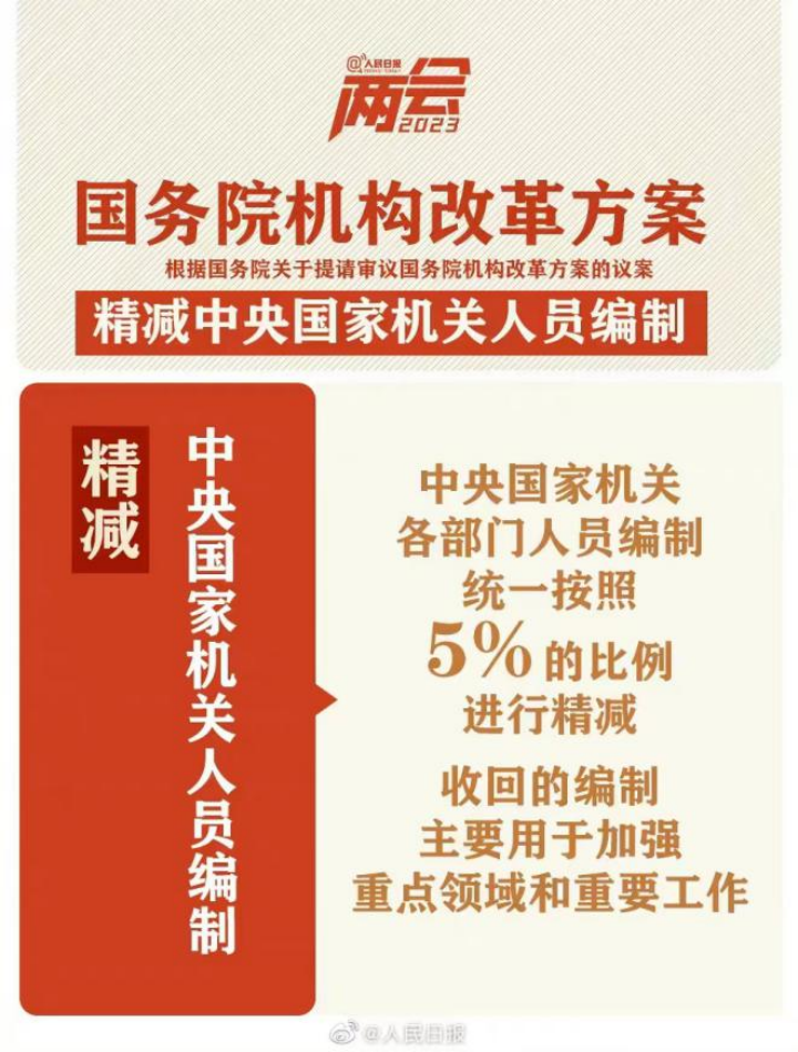 (图片来源:人民日报) 简而言之,对于中央国家机关人员编制的改革,以「优化人员,重点分配」为原则进行。