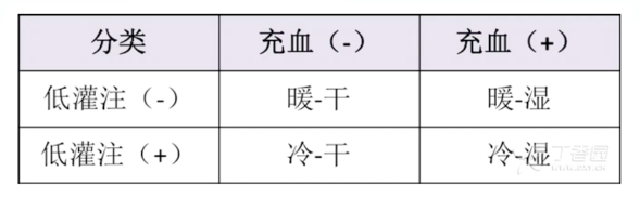 - 根据患者是否出现淤血,将其分为 「干、湿」两种类型;