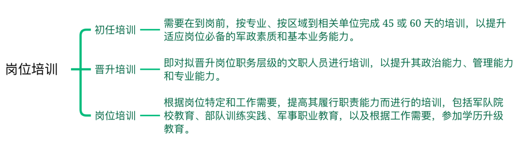 新文职条例后,调整为 3 类培训,即初任培训、晋升培训和岗位培训,优化了培训类型、拓宽了培训渠道、允许学历升级。